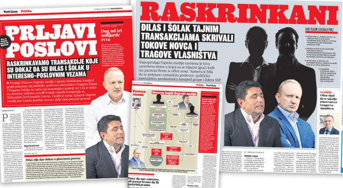 U serijalu tekstova pokazali smo zašto je prodaja Đilasove "Dajrekt medije" i zgrade "Multikoma" "Junajted grupi" tačka u kojoj se sagledava karakter političko-poslovnog savezništva Dragana Đilasa i Dragana Šolaka, teškog na desetine, a možda i stotine miliona evra. Ta saradnja bila je strogo čuvana tajna zbog toga što se iza nje krije komplikovana šema malverzacija. Kad se namerno zakomplikovan mehanizam kupovine i prodaje rastavi na delove i očisti od lažnih i podmetnutih elemenata, dobija se jasna slika da je Šolak još 2014. kupio "Dajrekt mediju" od Đilasove "Multikom grupe", što je skrivano i od tadašnjih suvlasnika "Junajted grupe" kako bi se izvlačile pare iz zajedničke kompanije.