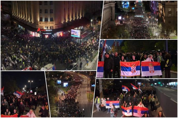 Grupa Srba sa KiM sinoć je stigla u Meljak, a danas je prošetala Beogradom, dok su im se usput pridruživali građani kako bi ih podržali. Dve kilometarske kolone spojile su se kod Mostarske petlje odakle su zajedno otišli do platoa ispred Skupštine gde ih je, prema proceni MUP-a, dočekalo 47.500 građana.