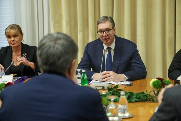 Predsednik Srbije Aleksandar Vučić sastao se sa predsednikom i delegacijom Odbora za politiku Evropske unije Parlamenta Republike Italije Alesandrom Điljom Vinom.
