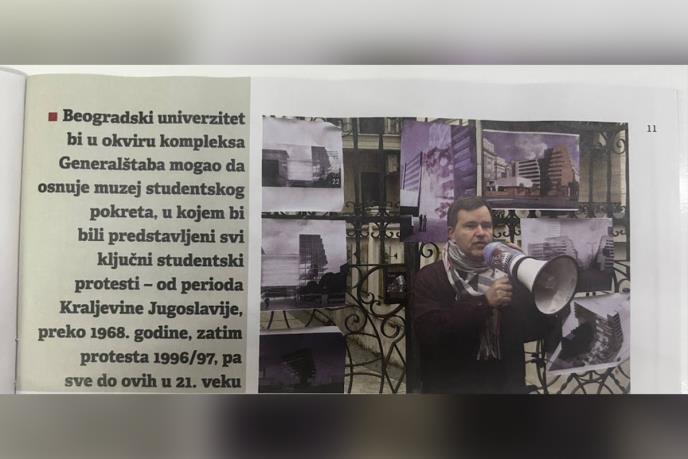 "Beogradski univerzitet bi u okviru kompleksa Generalštaba mogao da osnuje muzej studentskog pokreta, u kojem bi bili predstavljeni svi ključni studentski protesti - od perioda Kraljevine Jugoslavije - preko 1968. godine, zatim protesta 1996/7, pa sve do ovih u 21. veku", rekao je Lajbenšperger.