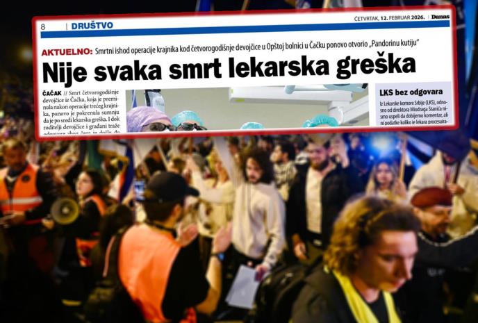 Tako je "Danas" objavio tekst pod naslovom "Nije svaka smrt lekarska greška", sa nadnaslovom "Smrtni ishod operacije krajnika kod četvorogodišnje devojčice u Opštoj bolnici u Čačku ponovo otvorio 'Pandorinu kutiju'".