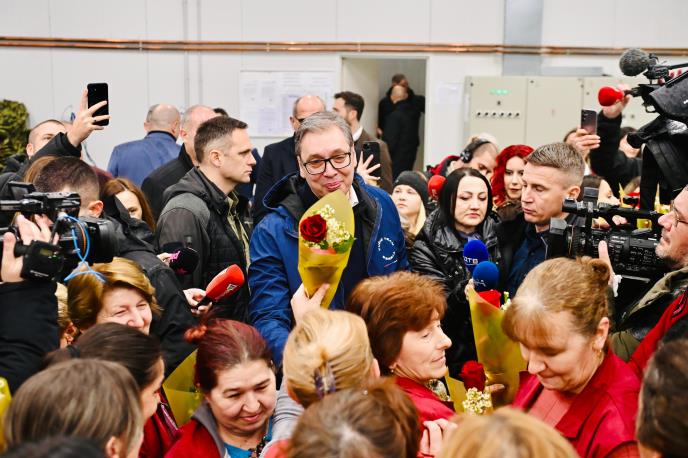 20.000 DINARA ZA SVAKU DAMU U "JUMKU" ZA 8. MART Predsednik Vučić razgovarao sa zaposlenima: Hvala vam na marljivosti i dobrom radu za svoju državu (FOTO)