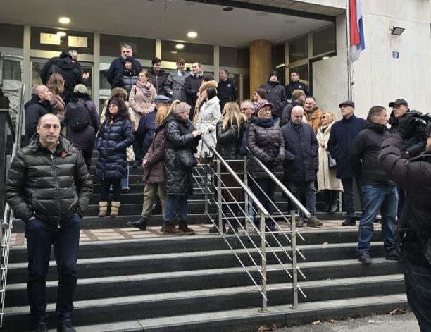 Ispred zgrade, u kojoj je smešten JTOK u Ustaničkoj ulici, ove blokadere - njih 1.200, dočekalo je svega 8 od 21 tužioca TOK na čelu sa šefom Mladenom Nenadićem.