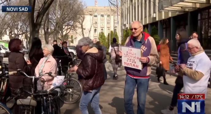 On je organizovao okupljanje u Novom Sadu ispred Osnovnog suda gde je trebalo da se održi ročište njegovom sinu Milanu zbog napada na službeno lice, ali je odloženo jer se oštećeni nije pojavio.