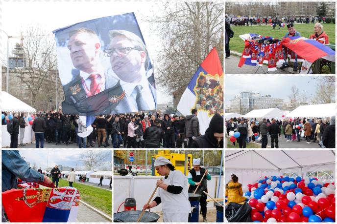 Vijore se zastave Srbije, ali i zastave sa likom predsednika Vučića.