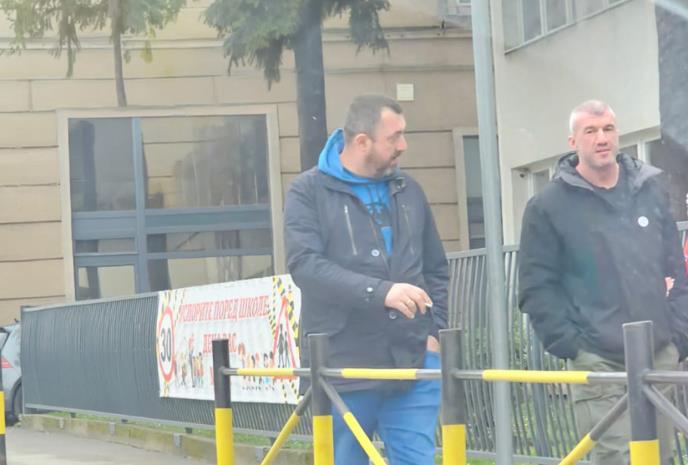 Blokader Miša Bačulov snimljen je u Smederevskoj Palanci, ispred Osnovne škole "Olga Milošević", u društvu nepoznate osobe.