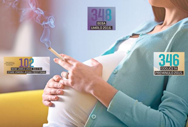 Pušenje, polno prenosive bolesti, infekcije, pokvareni zubi i druge loše navike majke, kao i sve starije trudnice glavni su uzroci što su preminule čak 102 bebe od 348 umrle novorođenčadi u Srbiji u 2016. godini.