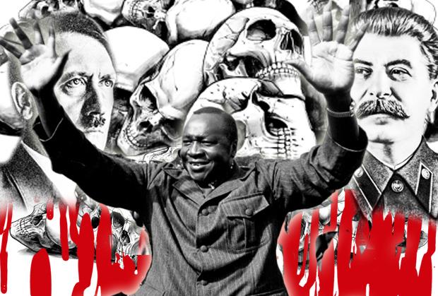 Predsednik Ugande uspostavio je zloglasni Državni istražni biro, koji je, prema njegovim naredbama, ubijao na hiljade nevinih Uganđana u kampanji etničkog čišćenja i javno, pred TV kamerama, pogubljivao svoje neprijatelje. Idi Amin je iskasapio sopstvenu ženu i pobio svoje ministre: glavu jednog od njih držao je u svom frižideru kako bi je, kao opomenu drugima, s vremena na vreme pokazivao. Do kraja njegove vladavine više od 300.000 ljudi, šestina populacije u Ugandi, bila je poubijana. Pokazivao je znake sadizma, pa je kao kaplar, boreći se u gušenju ustanka plemena Mau-Mau u Keniji, primoravao pripadnike plemena Karamadžong da svoje genitalije podignu na sto, preteći im da će ih odseći mačetom. Početkom 1962. bio je odgovoran za ubijanje nevinih pripadnika plemena Turkana, kao i za genocid u plemenima koja su podržavala prethodnu vlast. Naređivao je da se oficirima lome ruke i noge, da ih vojnici probadaju noževima i bajonetima, da im presecaju vrat ili, jednostavno, odsecaju glavu. Visina krvi na podu bila bi oko centimetar i po.