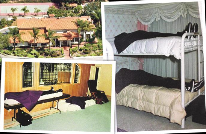 Izvukli su pištolje i ušli u vilu. Kako su opisali, unutra je bio polumrak, a na kompjuterima su se smenjivali šareni logo i natpis "Red alert" (crvena uzbuna), što je popularan izraz iz serije "Zvezdane staze". U prvoj sobi na koju su naleteli bilo je šest kreveta i na njima isto toliko tela. Sva su bila u crnoj odeći, s crnim "najk" patikama na nogama i ljubičastim prekrivačem preko glave. Nakon nekoliko koraka naišli su na još dva tela. U istoj odeći i obući i u istom položaju.
