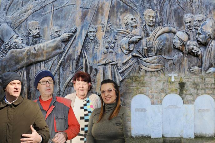 U bronzi prikaz istorijskog - Karađorđe i ustanici.