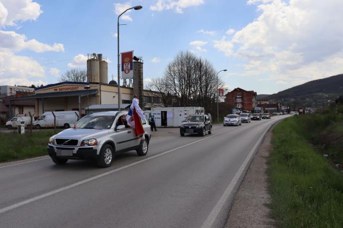 Okićeni i uz dignuta tri prsta, meštani Leposavića krenuli su na svadbu.