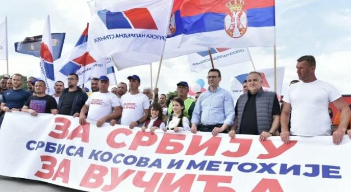 "Oni su prepešačili više stotina kilometara i još tolliko imaju do Beograda, jer žele da pokažu da, bez obzira na umor, da im je država Srbija iznad svega i naša slobodarska politika koju vodi Aleksandar Vučić. Oni su tu da podrže i budu prisutni na velikom mitiingu, mitingu nade za budućnost naše države i naše dece. Gotovo na svakoj tački gde prolaze naša braća, bilo grupa pešaka iz Kosovske Mitrovice i Leposavića, ili iz Kosovskog Pomoravlja, na svim tačkama gde stanu naš narod listom dočekuje naše ljude i pozdravlja ih, što pokazuje da smo jedinstveni i složni, a to jedinstvo i slogu i našu snagu pokazaćemo i u petak, da se vidi koliko volimo našu državu Srbiju. Juče je naše ljude, koji su krenuli iz Kosovskog Pomoravlja, obišao sin predsednika Aleksandara Vučića i potpredsednik Srpske liste Milan Radoičić. Vidim da su zbog toga bili malo nervozni u Prištini i da bukvalno napadaju na isti način kao što to radi i opozicija u Beogradu. Ali, neka napadaju oni koliko god hoće, to što oni pokušavaju da slome državu Srbiju je ono što pokazuje njihovo pravo lice. A naše lice je ljubav prema državi Srbiji, snaga i sloga koja će pobediti. Živela država Srbija, živeo naš narod na Kosovu i Metohiji", poručio je Petković.