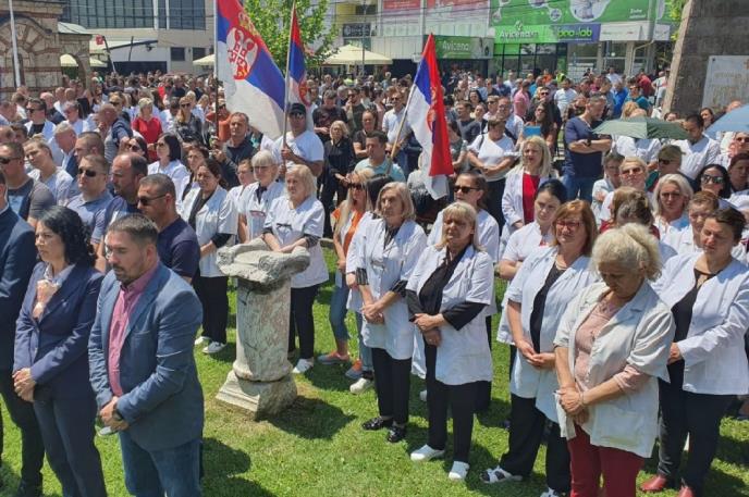 Ona je navela da sa mitinga okupljeni žele da pošalju podršku svojim kolegama sa severa kojima je onemogućeno da rade u normalnim uslovima.