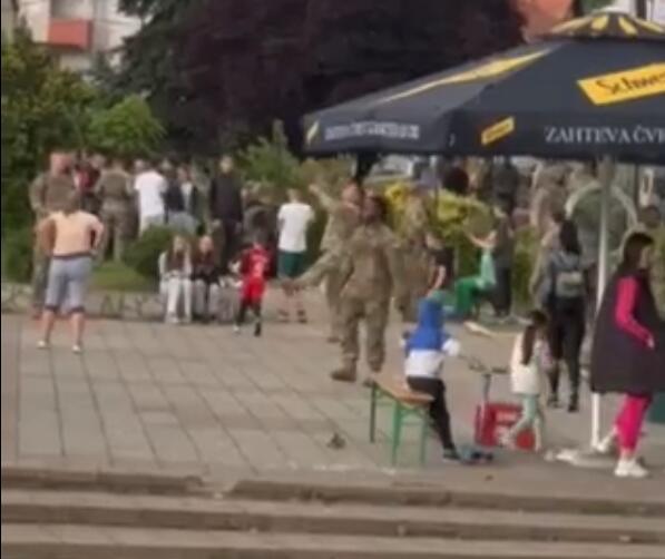 Kako se može videti na snimku, danas su se ispred zgrade opštine Leposavić vojnici američkog Kfora igrali sa mališanima ove opštine, pa su s njima u opuštenom druženju igrali fudbal, odbojku, dobacivali se loptom, uz graju i smeh.