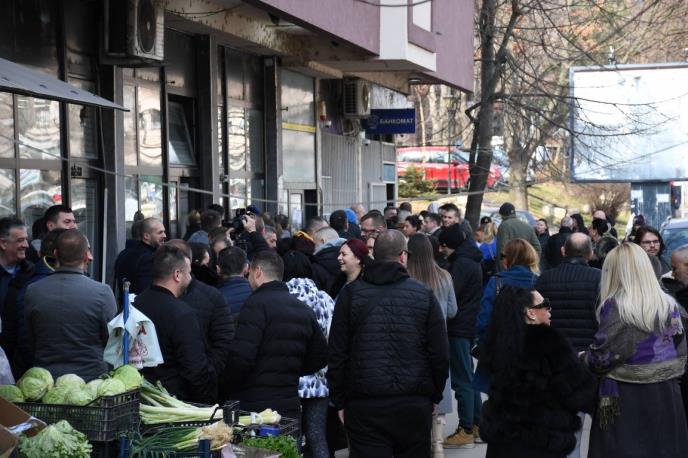 Ispred same ekspoziture ove banke nalazi se oko 150 ljudi koji pokušavaju da podignu novac, a pojedini su za Kosovo onlajn izrazili svoje nezadovoljstvo povodom ove situacije, uredbe Centralne Banke Kosova koja zabranjuje dinar, a koja ih direktno ugrožava.