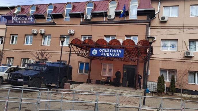 Pripadnika Kfora nema ni u opštinskoj zgradi, ispred koje se sada nalazi oklopno vozilo tzv. kosovske policije, pripadnici kosovske policije, kao i specijalnih snaga.