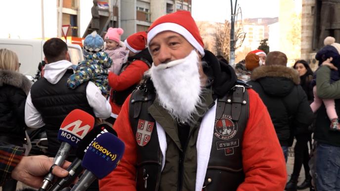 Bajkeri maskirani u Deda Mrazove i ove godine su uspeli da vrate osmeh na dečja lica podelom paketića, a Dušan Mlađovic, predsednik Moto kluba Gazimestan Kosovska Mitrovica, rekao je sledeće: