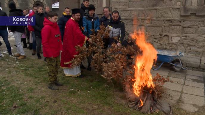 Paljenje badnjaka u Hramu svetog Save u Južnoj Mitrovici Foto: Printscreen Kosovo onlajn