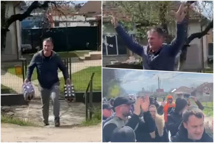DOMAĆIN ISTRČAO NA PUT DA POZDRAVI BRAĆU SRBE S KOSOVA! Poskočio od sreće pa im brže-bolje izneo osveženje da se okrepe za dalek put (VIDEO)