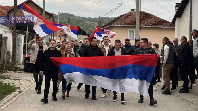 Srbi iz opštine Novo Brdo, iz mesta Gornje Kusce u velikom broju, zajedno su krenuli na glasanje a sa sobom na čelu kolone nose srpsku trobojku.
