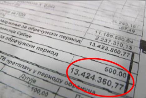 ALEKSINAC - Grujica Stanijamović iz Žitkovca kod Aleksinca dobio je račun za struju od neverovatnih 13 miliona 426 hiljada 874 dinara.