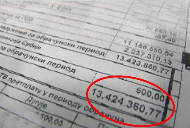 Grujica Stanijamović iz Žitkovca kod Aleksinca dobio je račun za struju od neverovatnih 13 miliona 426 hiljada 874 dinara, iako mesečno njegovo domaćinstvo troši u proseku između hiljadu i po i dve hiljade dinara.