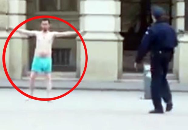 NOVI SAD - Nepoznati mladić danas oko 17 časova skinuo se i trčao po Trgu slobode. Njegov svojevrsni performans tokom kojeg je povremeno uzvikivao nerazumljive reči ili kraće rečenice, kao i izvodio izvesne vežbe je posmatralo stotine zbunjenih Novosađana.