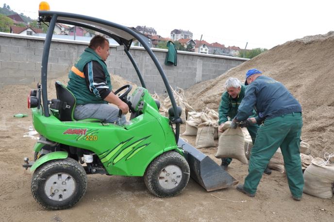 Opština je obezbedila pesak i džakove a radnici „Čistoće“ iz svih službi već tri dana aktivno rade na punjenju džakova i transportu do gradskog groblja, gde se pravi nasip za odbranu od poplava, rekao je tehnički rukovodilac JKP „Čistoća“ Siniša Ljuboja