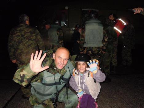 Vojska Srbije podelila je na Tviteru dirljivu fotografiju sa aerodroma Batajnica na kome se vrši prihvatanje evakuisanih.