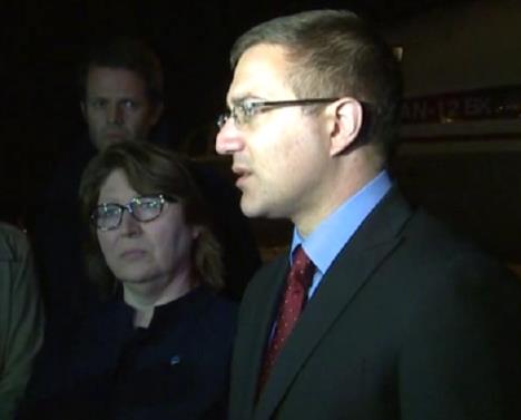 Avion je dočekao ministar unutrašnjih poslova Nebojša Stefanović sa predstavnicom tima UN u Srbiji Irenom Vojcakovom Solarno.