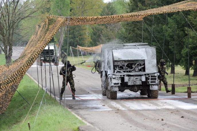 Angažovano je petnaest ljudi od koji je deset profesionalnih vojnika. Oni svoj posao obavljaju u gumenim zaštitnim odelima u kojima mogu da izdrže neprekidno oko pola sata zbog porasta temperature.Svakih sat vremena oni gube jedan litar vode iz organizma, saopštilo je Ministarstvo odbrane, uz podsećanje da se biološkom dekontaminacijom otklanja opasnost od razvoja gljivica, buđi i bakterija.Stručnjaci ukazuju da je u pitanju takozvana prevenentivna dekontaminacija, kojom se sprečava mogućnost zaraze i epidemije crevnih bolesti.