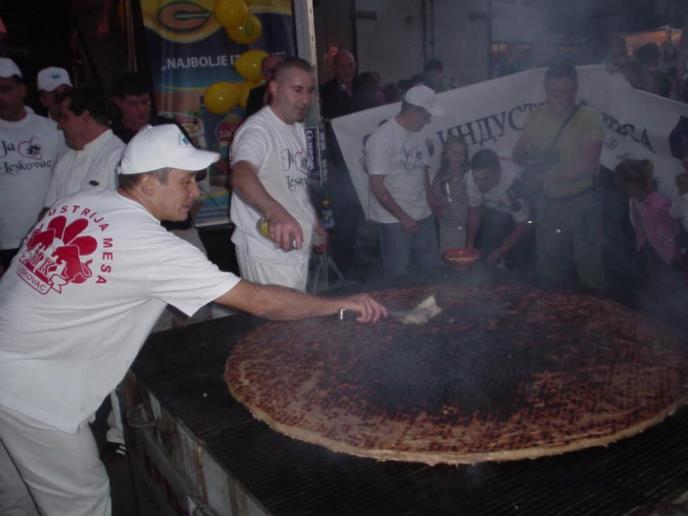 Ivan Đorđević (37) i Nikola Petrović (22) iz „MK mesare“ napravili su i ispekli najveću pljeskavicu na svetu od 56 kliograma mesa. Prečnika 162 centimetra i debljine 2,5 centimetra u trenutku stavljanja na ogromnu skaru u centru leskovačke Roštiljijade pljeskavica se polako pekla više od sat vremena. Uz zvuke trubača orkestra Milana Nikolića „Donje“ iz obližnje Grdelice , više hiljada Leskovčana i gostiju iz zemlje i inostranstva iščekivalo da se pljeskavica ispeče i obori rekord.