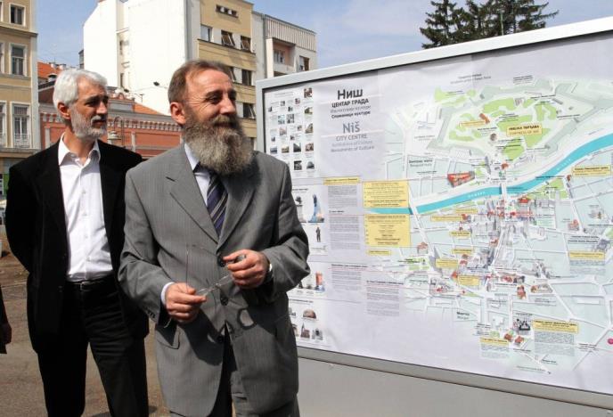 NIŠ - Ministar kulture Predrag Marković posetio je u Nišu lokaciju na kojoj je bilbord koji prikazuje kulturnu mapu Niša sa ucrtanim kulturno-istorijskim institucijama grada. Iako je najavljeno kao svečano otvaranje kulturne mape Niša, izostala je svečanost, a ministar je objasnio da je mapa zapravo putokaz.