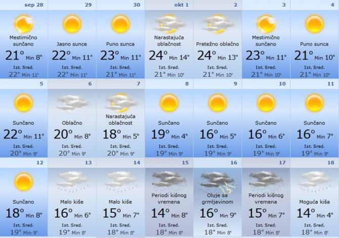 Nešto hladnije biće tek krajem oktobra kada će živa u termometru dostići šesti podeok.