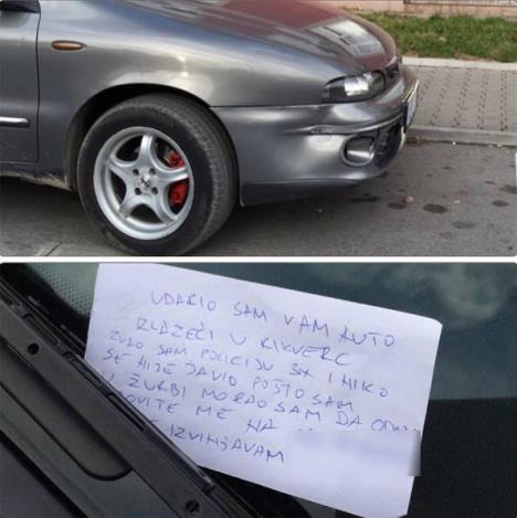 Naime, on je slučajno udarivši tuđi auto, ostavio poruku i telefonski broj.