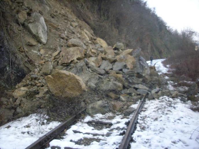 KURŠUMLIJA - Zbog velike količine kamenja koje je palo na prugu u prekidu je železnički saobraćaj na relaciji Kuršumlija Merdare.