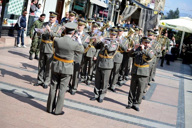 NIŠ- Vojni orkestar održao je danas promenadni defile ulicama Niša povodom 23. aprila - Dana Vojske Srbije.