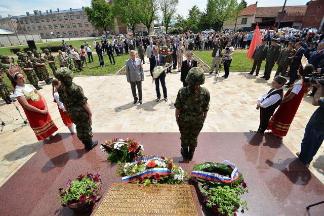 Kodirektor Srpsko-ruskog humanitarnog centra Viktor Safjanov rekao je da je Dan pobede najradosniji dan i da kao što su na otkrivanju spomenika ruska i srpska zastava, tako su te zastave danas pronete Crvenim trgom na paradi u Rusiji.Safjanov je rekao da je to potvrda istorijskih i prijateljskih veza naših naroda.Vence na novootkriveni spomenik položile su delegacije grada, okruga, Srpsko-ruskog humanitarnog centra, Policijske uprave, boračkih organizacija i udruženja koje neguju tradicije oslobodilačkih ratova i građani.Spomenik je od crvenog granita, težak je 38 tona sa dve kolone, reljefom i zvonom, a razultat je zajedničkog rada srpskog i ruskog naroda.