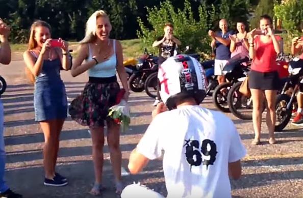 Dobila je cveće i mislila je da je izenađenju kraj, kada je ovaj romanitčni bajker kleknuo i izvadio prsten