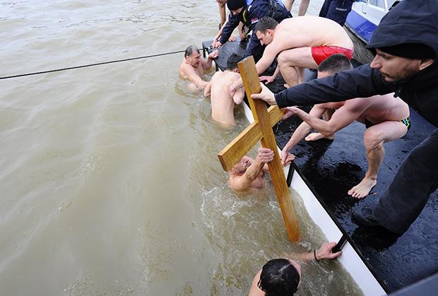 Temperatura vode od svega nekoliko stepeni iznad nule , ali i led koji je razbijen neposredno pred takmičenje za simbol vere i hrišćanstva, nisu obeshrabrili 12 srčanih momaka. Bodrilo ih je više stotina građana: