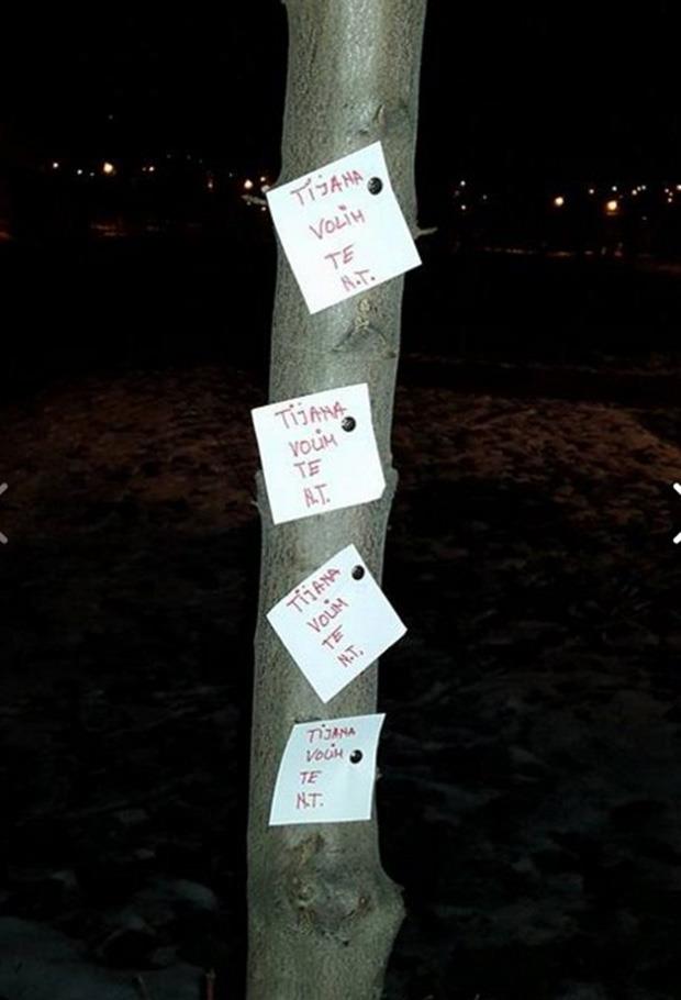 Svaki auto, drvo, zid, klupa... Svuda je ovaj momak, sakriven iza inicijala N.T, zakačio papir na kojem je kratko i efektno stajalo: "Tijana, volim te!"