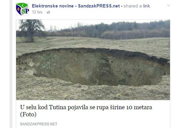 Džinovska rupa, široka čak 10 metara, otvorila se kod Tutina i progutala dobro parče zemlje!