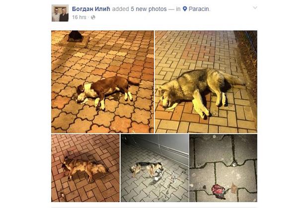 "Ovako nešto u životu nisam video. Pitam se kakav nečovek moraš biti pa da otruješ desetine pasa u roku od 15min. Otrov u mesu toliko je jak da su psi sa penom u ustima pali kao pokošeni. Horor i tuga koje mislim da nikada neću zaboraviti. Centar Paraćina, doduše ne tako veliki, preplavljen telima otrovanih pasa koji nikome nista nisu skrivili. Izgleda krivi što su živi i izbačeni”, napisao je Bogdan Ilić koji je objavio fotografije.