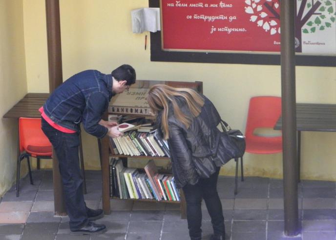 Bilo da su zastarele, neaktuelne ili su jednostavno višak, ove knjige se najpre nude Narodnoj biblioteci Srbije, kao i seoskim i školskim bibliotekama, a one koje “preskoče” se poklanjaju. Da takve naslove ne bi bacili, zaposleni u biblioteci “Stevan Sremac” došli su na ideju da naprave “bankomat” - drvenu policu ispred biblioteke na kojoj se trenutno nalazi nekoliko desetina knjiga - beletristike i stručne literature.
