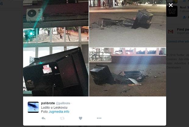 Televizor je bačen ispred prodavnice Đak u ulici Bulevar oslobođenja u centru grada, u vreme najveće gužve kada tom ulicom šeta stotine Leskovčana sa decom.