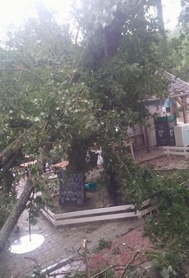 Na svu sreću nije bilo povređenih, nego samo uplašenih gositiju restorana i osim uništenog drveta nekoliko polomljenih crepova.
