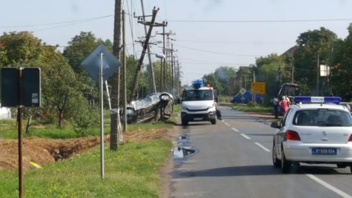 U Novom Miloševu jutros se odigrala prava drama, kada je auto sleteo sa puta i zakucao se u električnu banderu.