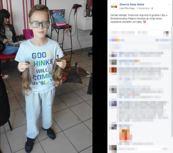 Mihajlo ima 8 godina i donirao je svoju kosu obolelima od raka.