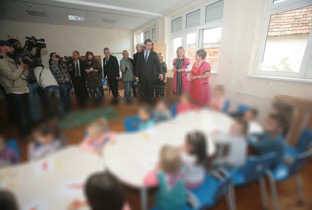 Premijer Vučić prvo je obišao novoizgrađenu zgradu vrtića u Prokuplju, gde je srdačno dočekan.
