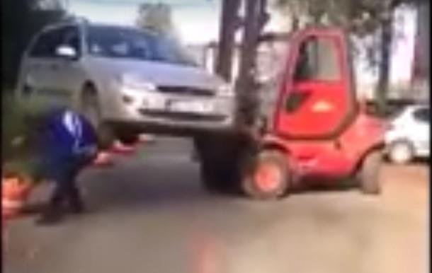 (VIDEO) KAD SE BAHATO PARKIRAŠ U NOVOM SADU: Došli radnici sa viljuškarem i OČITALI MU LEKCIJU!